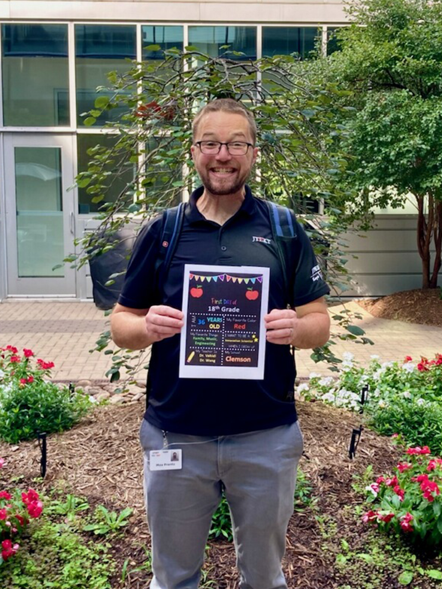As a relatively new resident of Greenville, Jamie and Irene enjoy exploring all the Upstate has to offer, especially outdoor activities. They’ve already hiked popular local trails like Paris Mountain and Table Rock, but their favorite trek is the monthly trip to Maine to visit their grandchildren. With two grandkids, ages 3 and 1, Jamie — also known as ”Papa” — cherishes watching them grow and observing the interactions between his wife, their daughter, and the next generation. It’s that same sense of perspective that makes Jamie such a valuable mentor to his automotive engineering students.